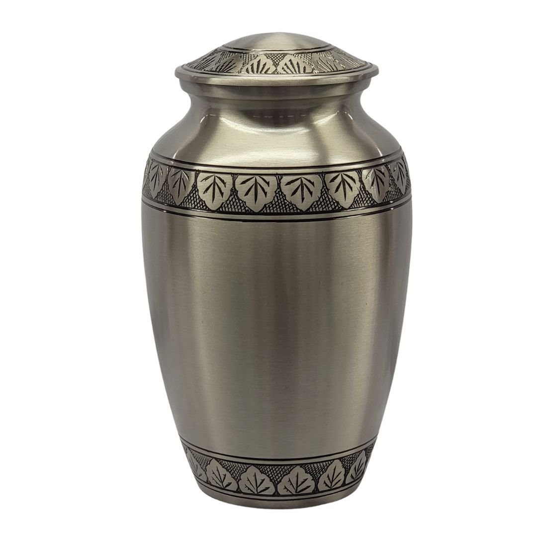 SOLID BRASS Polished Pewter finish with Black leaf bands. Threaded lid top opening